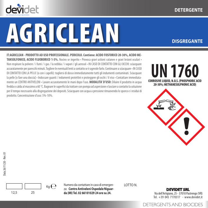 AGRICLEAN detergente acido disgregante è disponibile nei seguenti formati: Tanica da 10 - 20 kg.