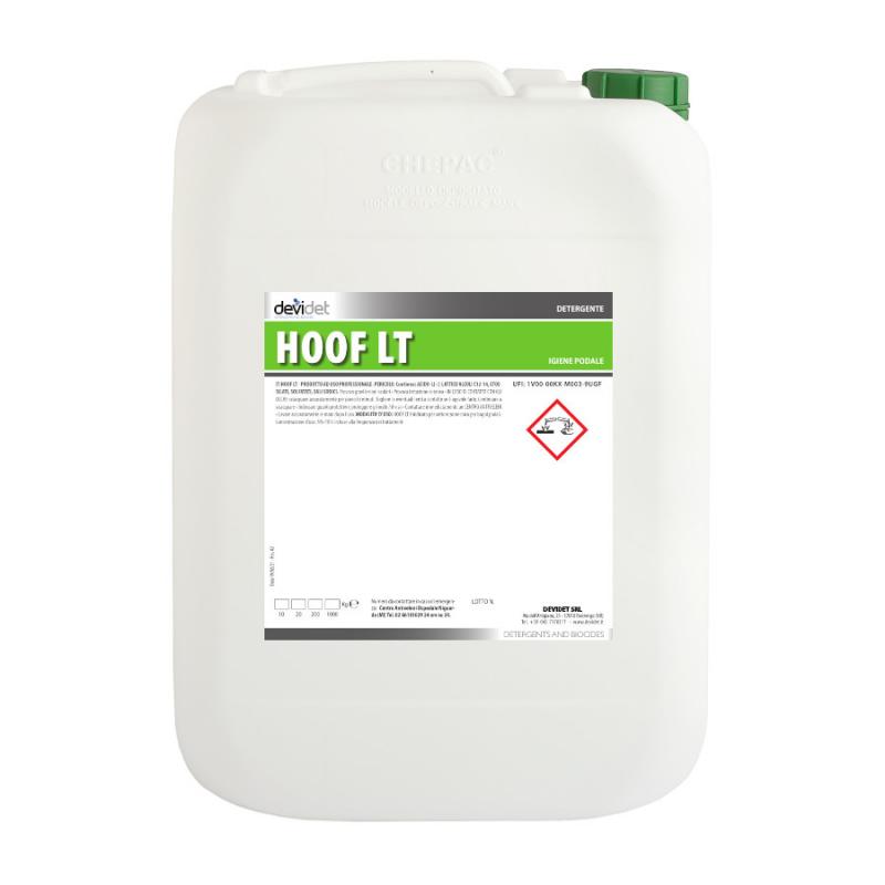 L’azione che questo detergente liquido podale svolge sull’animale è bagnante oltre che detergete: in questo modo consente l’ammorbidimento e la rimozione delle croste e dello sporco dalle unghie. Nello stesso tempo, HOOF LT agisce come esfoliante, regolatore di pH e dei processi di cheratinizzazione favorendo il naturale rafforzamento della barriera protettiva dell’unighia dell’animale da reddito.