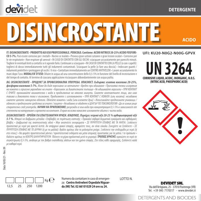 DISINCROSTANTE è conforme al Regolamento (CE) n. 648/2004/CE